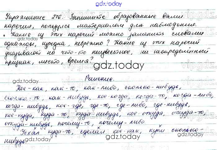 На страницах сайта gdz.today вы найдете учебный и вспомогательный материал, направленный на улучшения знаний школьной программы. ГДЗ - онлайн мир знаний Решение. Упражнения 276 Учебнику по Русскому языку для 7 класса Баранов, Ладыженская Просвещение, Просвещение 2015, 2022