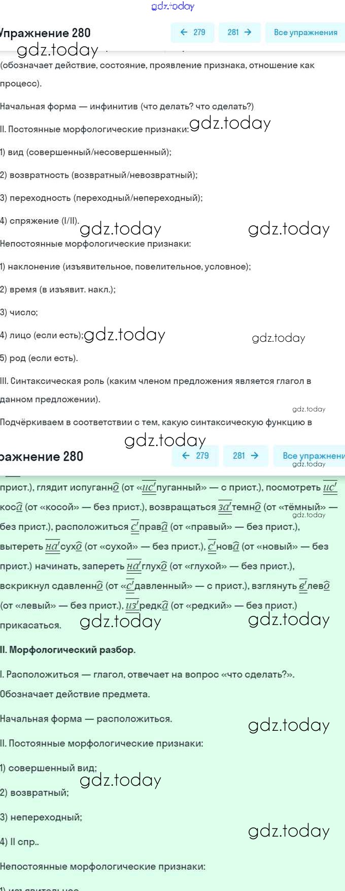 На страницах сайта gdz.today вы найдете учебный и вспомогательный материал, направленный на улучшения знаний школьной программы. ГДЗ - онлайн мир знаний Решение. Упражнения 280 Учебнику по Русскому языку для 7 класса Баранов, Ладыженская Просвещение, Просвещение 2015, 2022