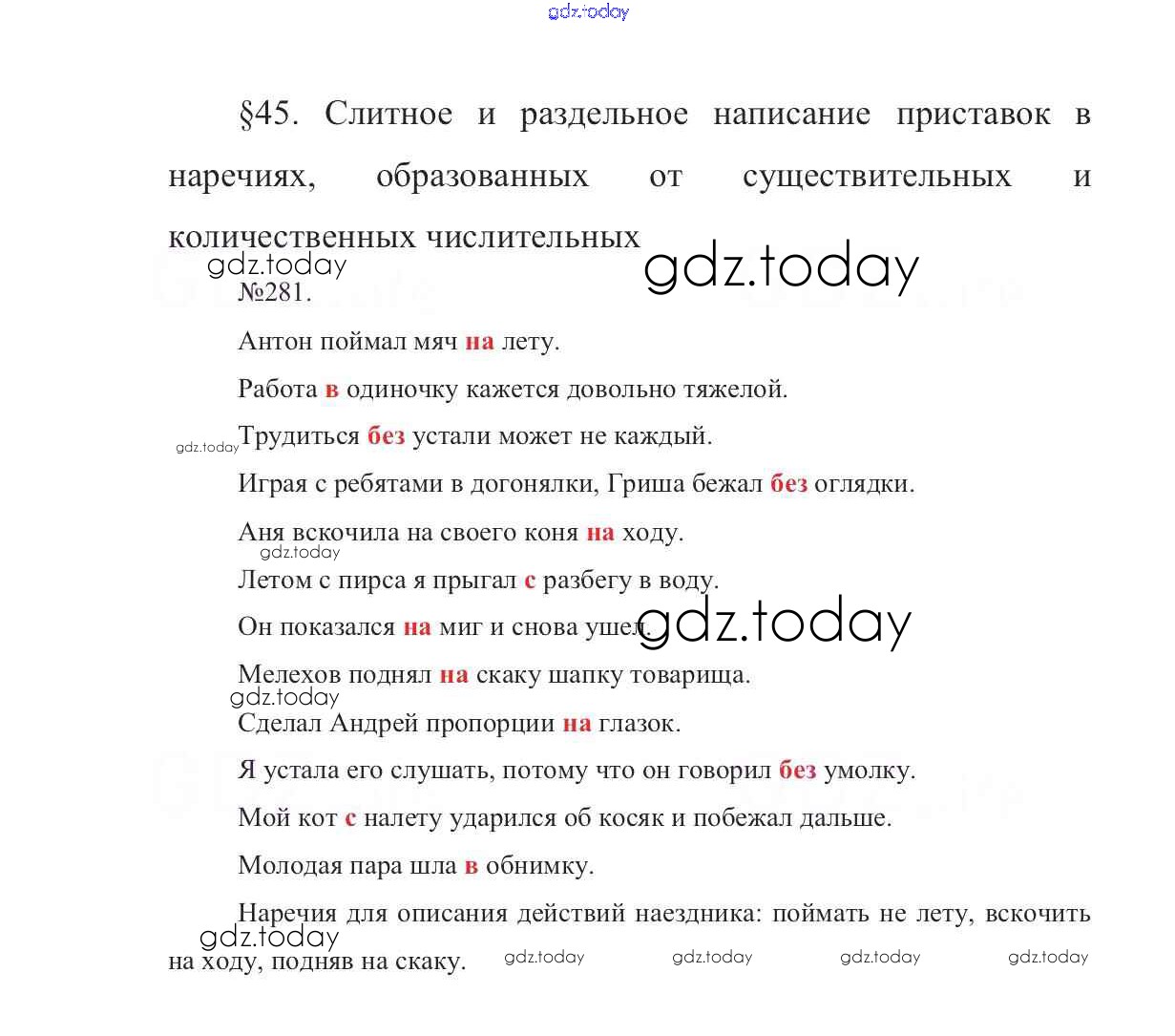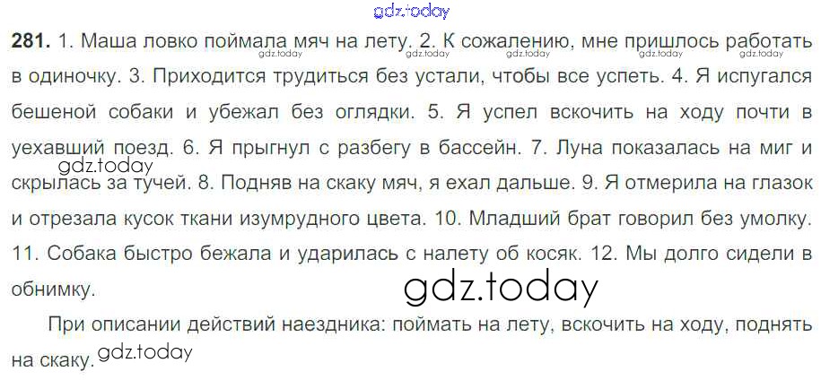На страницах сайта gdz.today вы найдете учебный и вспомогательный материал, направленный на улучшения знаний школьной программы. ГДЗ - онлайн мир знаний Решение к упражнениям 281 Учебнику по Русскому языку для 7 класса Баранов, Ладыженская Просвещение УМК 2015