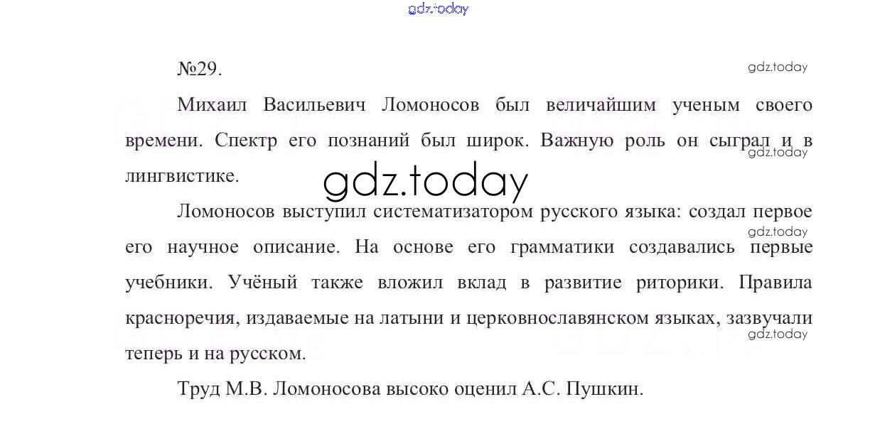 На страницах сайта gdz.today вы найдете учебный и вспомогательный материал, направленный на улучшения знаний школьной программы. ГДЗ - онлайн мир знаний Решение к упражнениям 29 Учебнику по Русскому языку для 7 класса Баранов, Ладыженская Просвещение УМК 2015