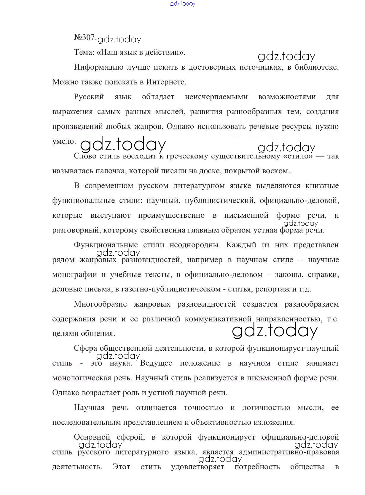 На страницах сайта gdz.today вы найдете учебный и вспомогательный материал, направленный на улучшения знаний школьной программы. ГДЗ - онлайн мир знаний Решение к упражнениям 307 Учебнику по Русскому языку для 7 класса Баранов, Ладыженская Просвещение УМК 2015