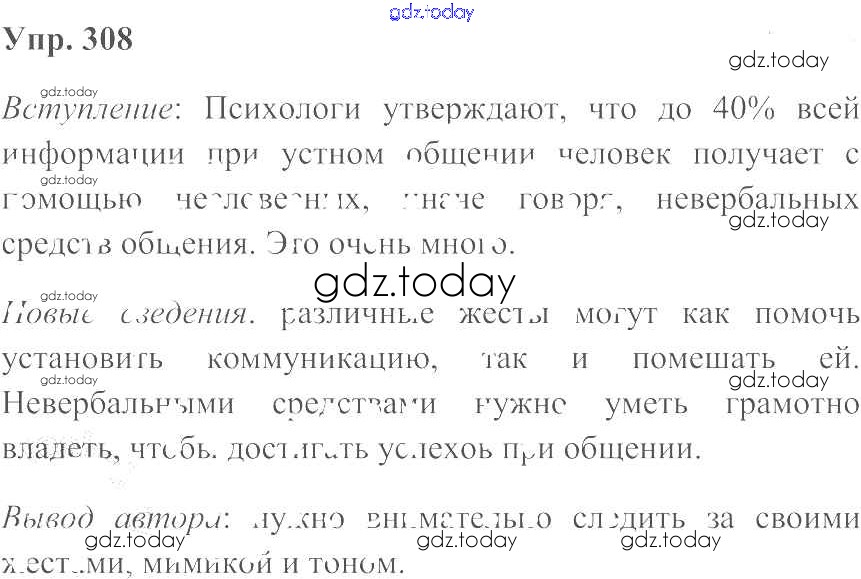 На страницах сайта gdz.today вы найдете учебный и вспомогательный материал, направленный на улучшения знаний школьной программы. ГДЗ - онлайн мир знаний Решение к упражнениям 308 Учебнику по Русскому языку для 7 класса Баранов, Ладыженская Просвещение УМК 2015
