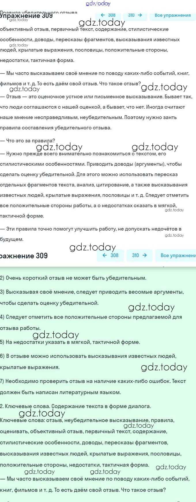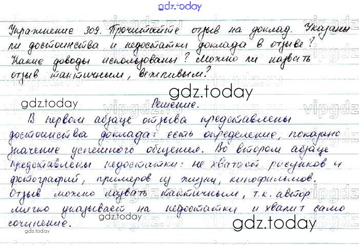 На страницах сайта gdz.today вы найдете учебный и вспомогательный материал, направленный на улучшения знаний школьной программы. ГДЗ - онлайн мир знаний Решение. Упражнения 309 Учебнику по Русскому языку для 7 класса Баранов, Ладыженская Просвещение, Просвещение 2015, 2022