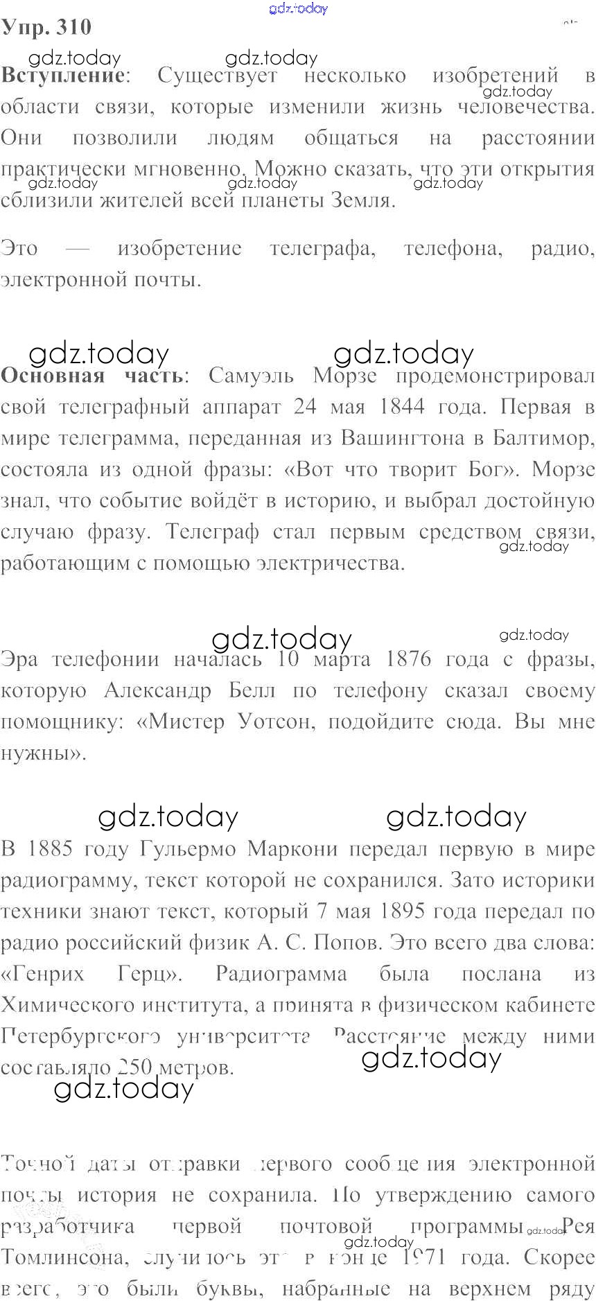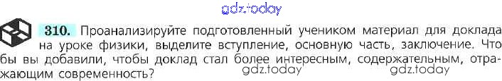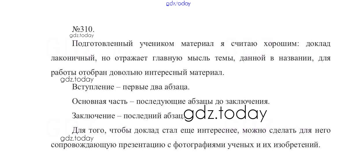 На страницах сайта gdz.today вы найдете учебный и вспомогательный материал, направленный на улучшения знаний школьной программы. ГДЗ - онлайн мир знаний Решение к упражнениям 310 Учебнику по Русскому языку для 7 класса Баранов, Ладыженская Просвещение УМК 2015