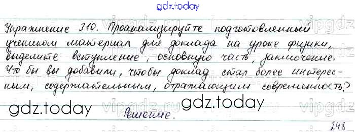 На страницах сайта gdz.today вы найдете учебный и вспомогательный материал, направленный на улучшения знаний школьной программы. ГДЗ - онлайн мир знаний Решение. Упражнения 310 Учебнику по Русскому языку для 7 класса Баранов, Ладыженская Просвещение, Просвещение 2015, 2022