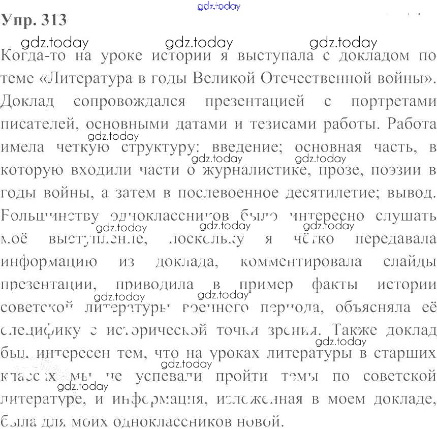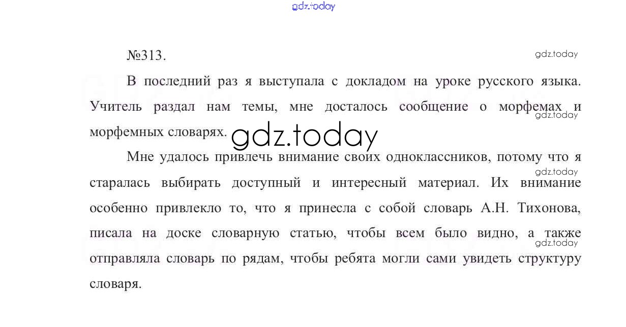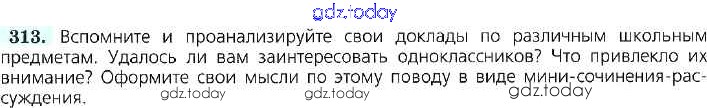 На страницах сайта gdz.today вы найдете учебный и вспомогательный материал, направленный на улучшения знаний школьной программы. ГДЗ - онлайн мир знаний Решение к упражнениям 313 Учебнику по Русскому языку для 7 класса Баранов, Ладыженская Просвещение УМК 2015