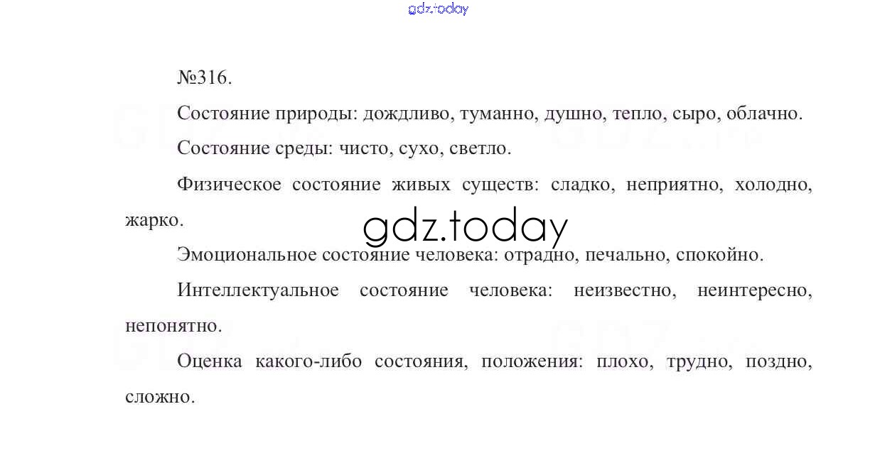 На страницах сайта gdz.today вы найдете учебный и вспомогательный материал, направленный на улучшения знаний школьной программы. ГДЗ - онлайн мир знаний Решение к упражнениям 316 Учебнику по Русскому языку для 7 класса Баранов, Ладыженская Просвещение УМК 2015