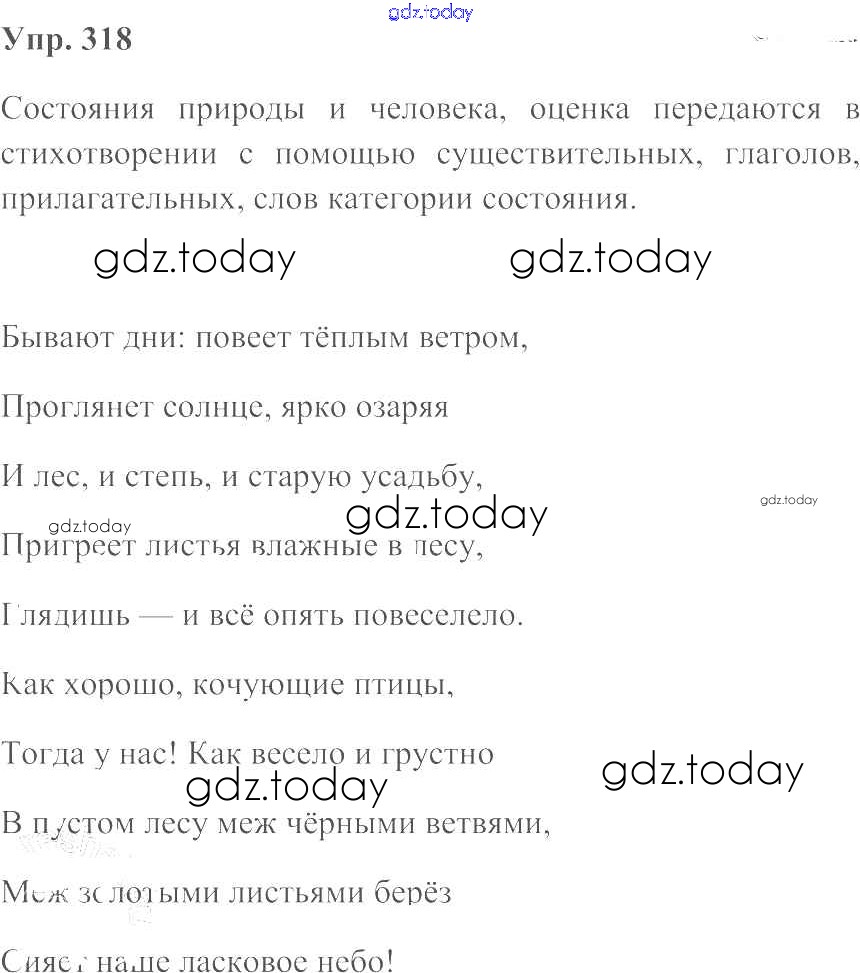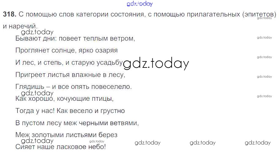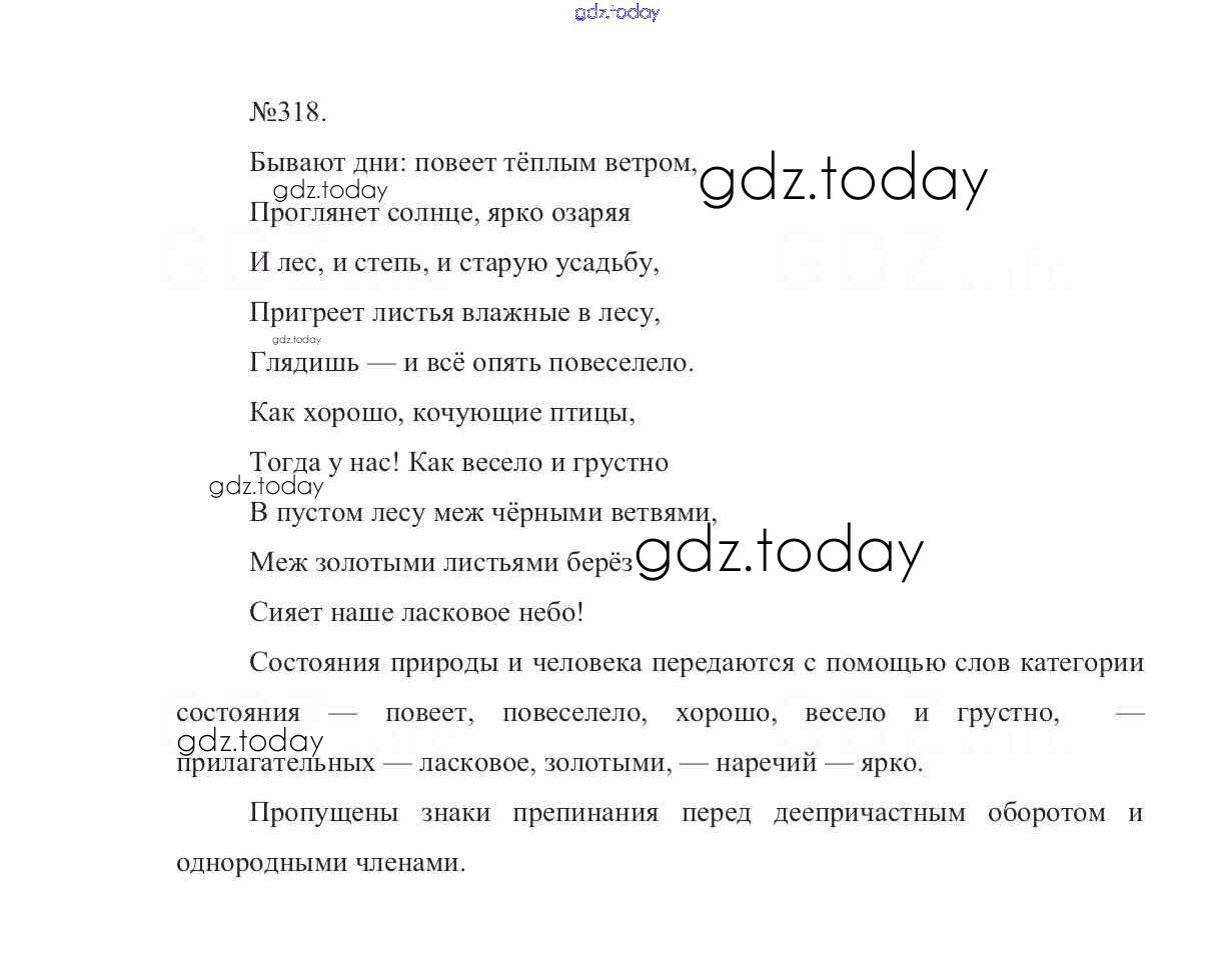 На страницах сайта gdz.today вы найдете учебный и вспомогательный материал, направленный на улучшения знаний школьной программы. ГДЗ - онлайн мир знаний Решение к упражнениям 318 Учебнику по Русскому языку для 7 класса Баранов, Ладыженская Просвещение УМК 2015