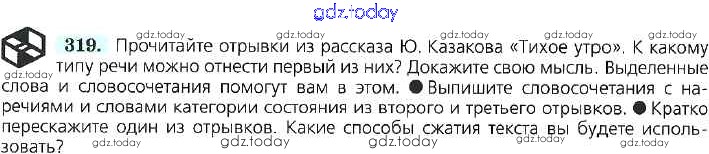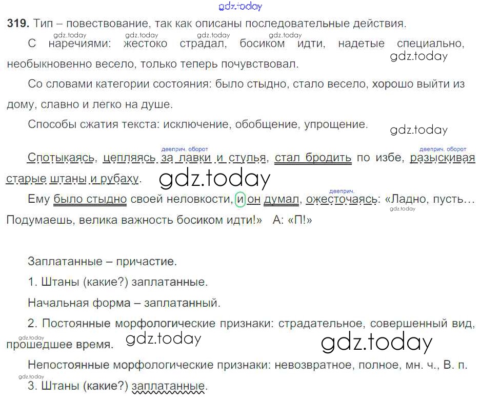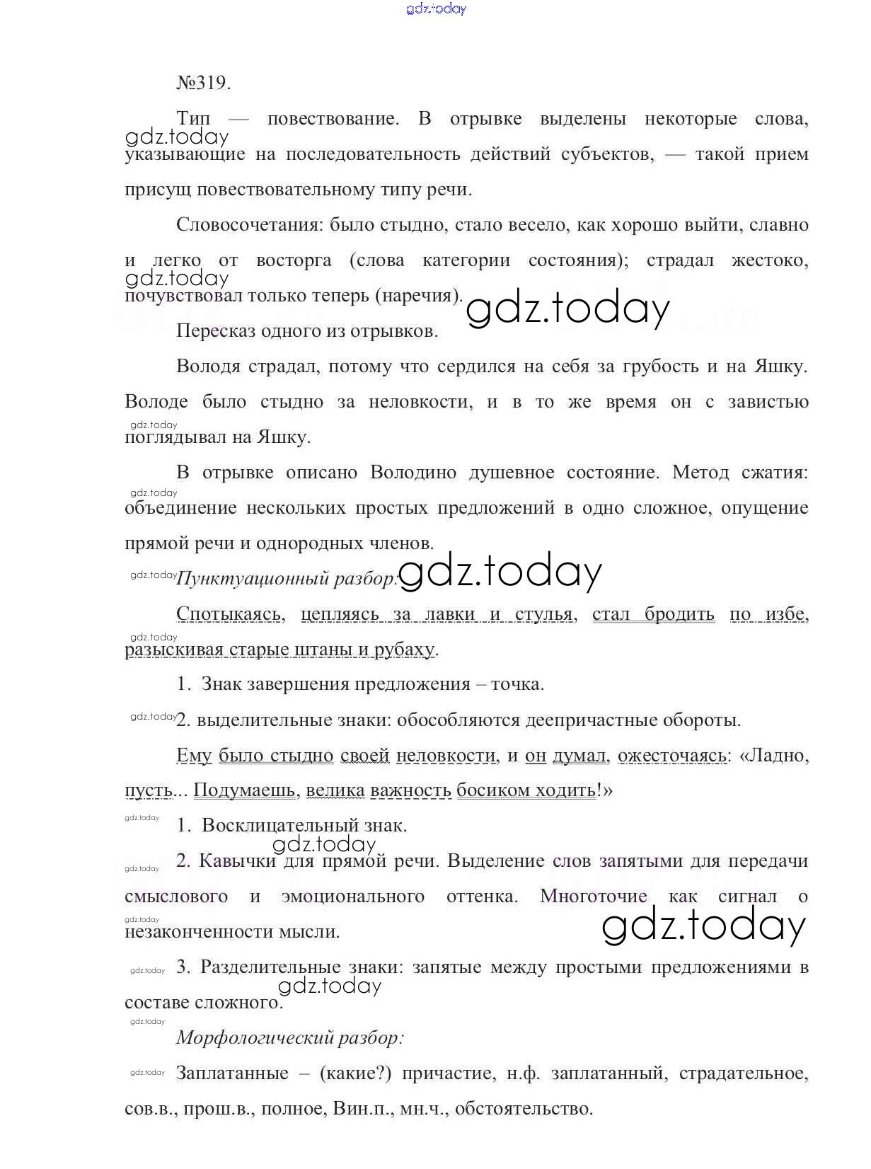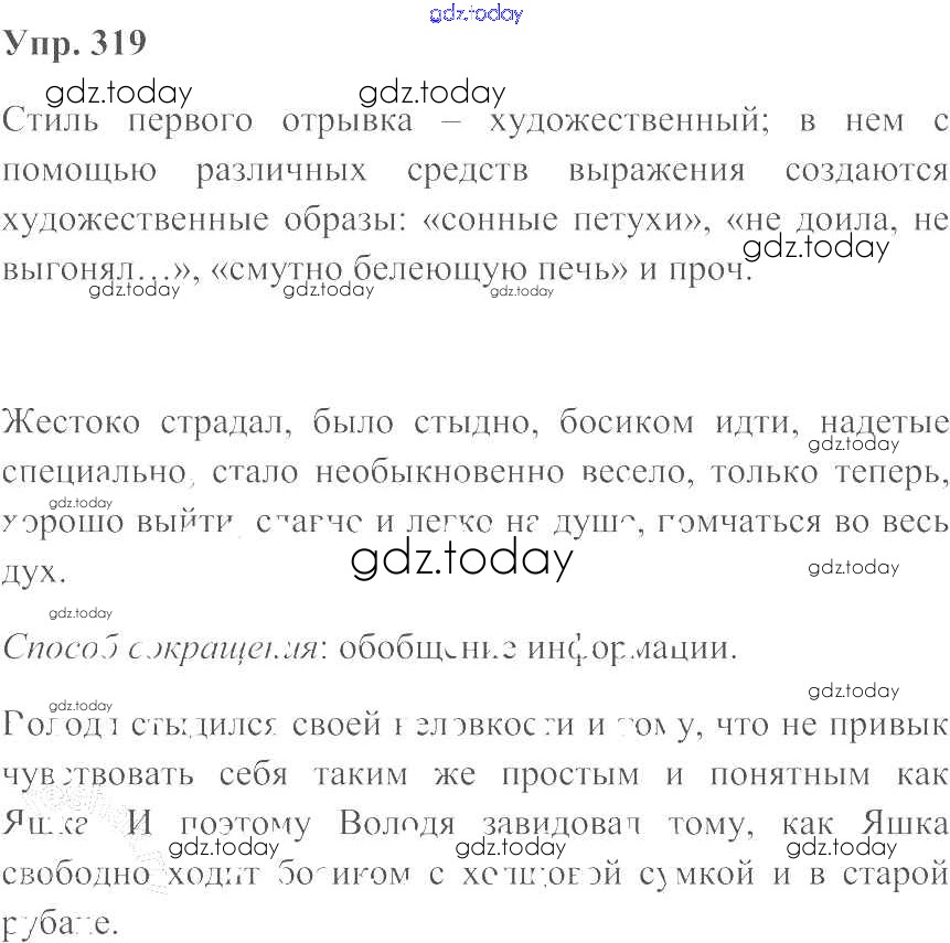 На страницах сайта gdz.today вы найдете учебный и вспомогательный материал, направленный на улучшения знаний школьной программы. ГДЗ - онлайн мир знаний Решение к упражнениям 319 Учебнику по Русскому языку для 7 класса Баранов, Ладыженская Просвещение УМК 2015