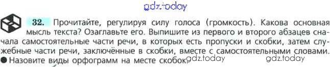 На страницах сайта gdz.today вы найдете учебный и вспомогательный материал, направленный на улучшения знаний школьной программы. ГДЗ - онлайн мир знаний Решение к упражнениям 32 Учебнику по Русскому языку для 7 класса Баранов, Ладыженская Просвещение УМК 2015