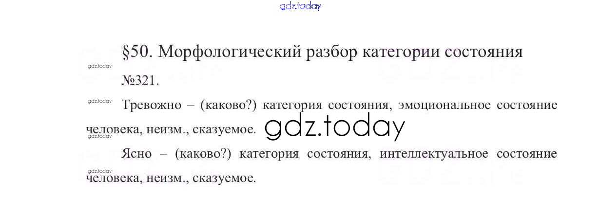 На страницах сайта gdz.today вы найдете учебный и вспомогательный материал, направленный на улучшения знаний школьной программы. ГДЗ - онлайн мир знаний Решение к упражнениям 321 Учебнику по Русскому языку для 7 класса Баранов, Ладыженская Просвещение УМК 2015
