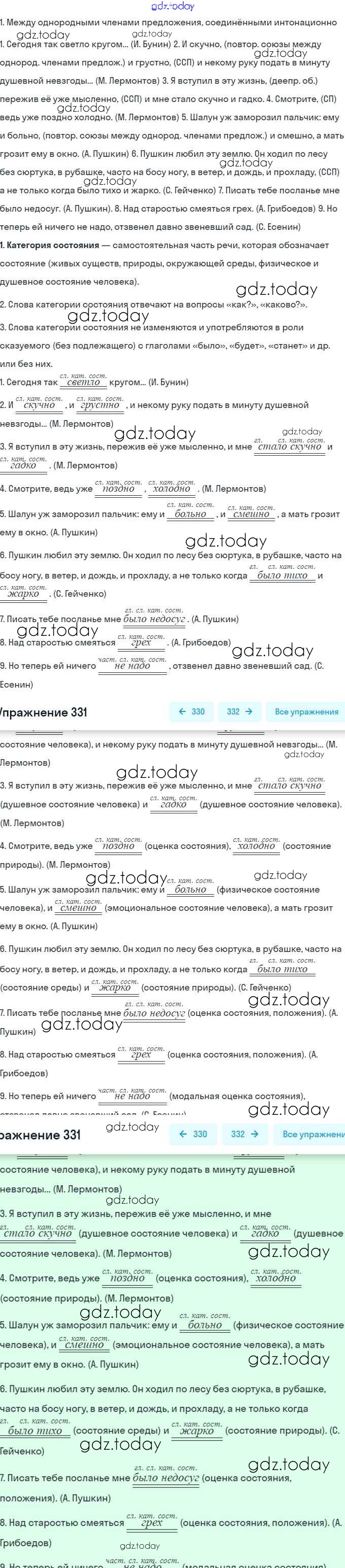 На страницах сайта gdz.today вы найдете учебный и вспомогательный материал, направленный на улучшения знаний школьной программы. ГДЗ - онлайн мир знаний Решение. Упражнения 331 Учебнику по Русскому языку для 7 класса Баранов, Ладыженская Просвещение, Просвещение 2015, 2022