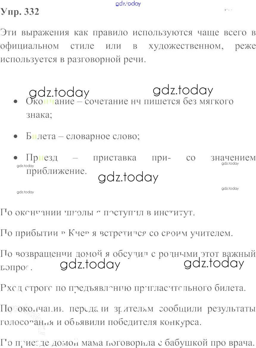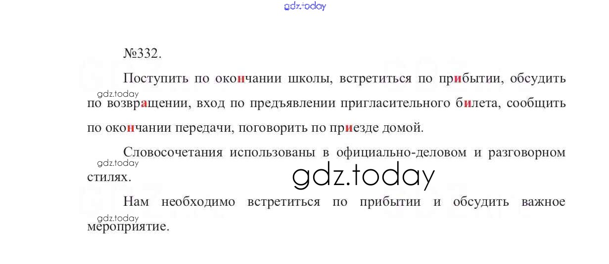 На страницах сайта gdz.today вы найдете учебный и вспомогательный материал, направленный на улучшения знаний школьной программы. ГДЗ - онлайн мир знаний Решение к упражнениям 332 Учебнику по Русскому языку для 7 класса Баранов, Ладыженская Просвещение УМК 2015