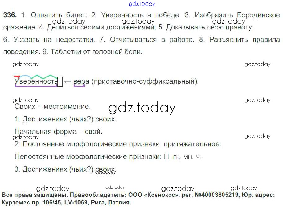 На страницах сайта gdz.today вы найдете учебный и вспомогательный материал, направленный на улучшения знаний школьной программы. ГДЗ - онлайн мир знаний Решение к упражнениям 336 Учебнику по Русскому языку для 7 класса Баранов, Ладыженская Просвещение УМК 2015