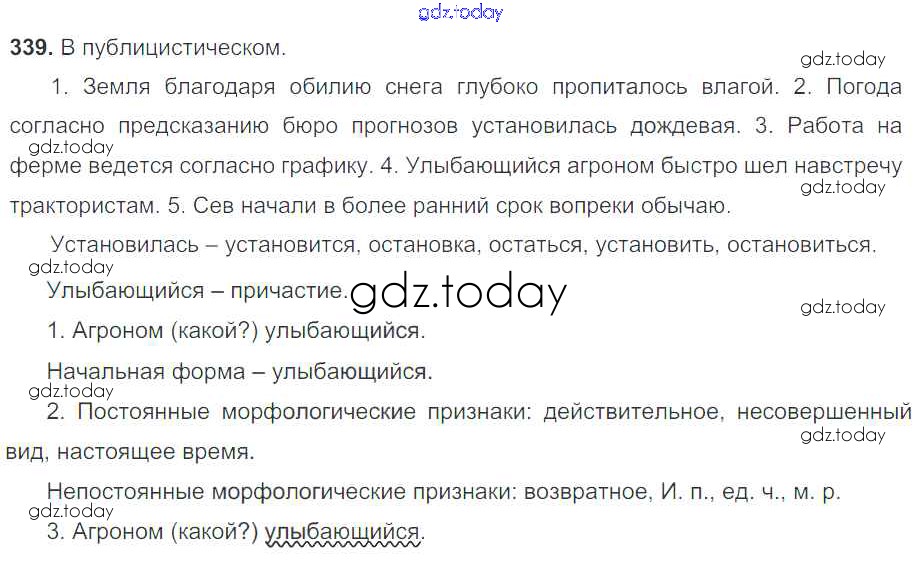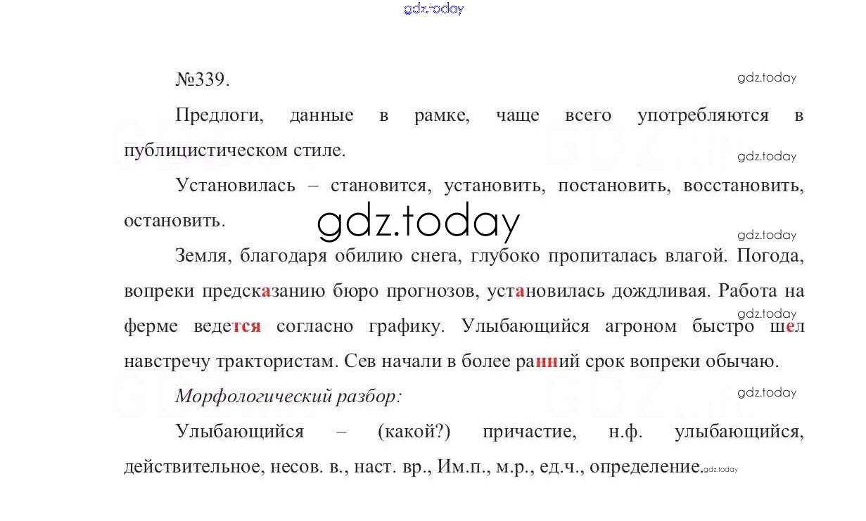 На страницах сайта gdz.today вы найдете учебный и вспомогательный материал, направленный на улучшения знаний школьной программы. ГДЗ - онлайн мир знаний Решение к упражнениям 339 Учебнику по Русскому языку для 7 класса Баранов, Ладыженская Просвещение УМК 2015