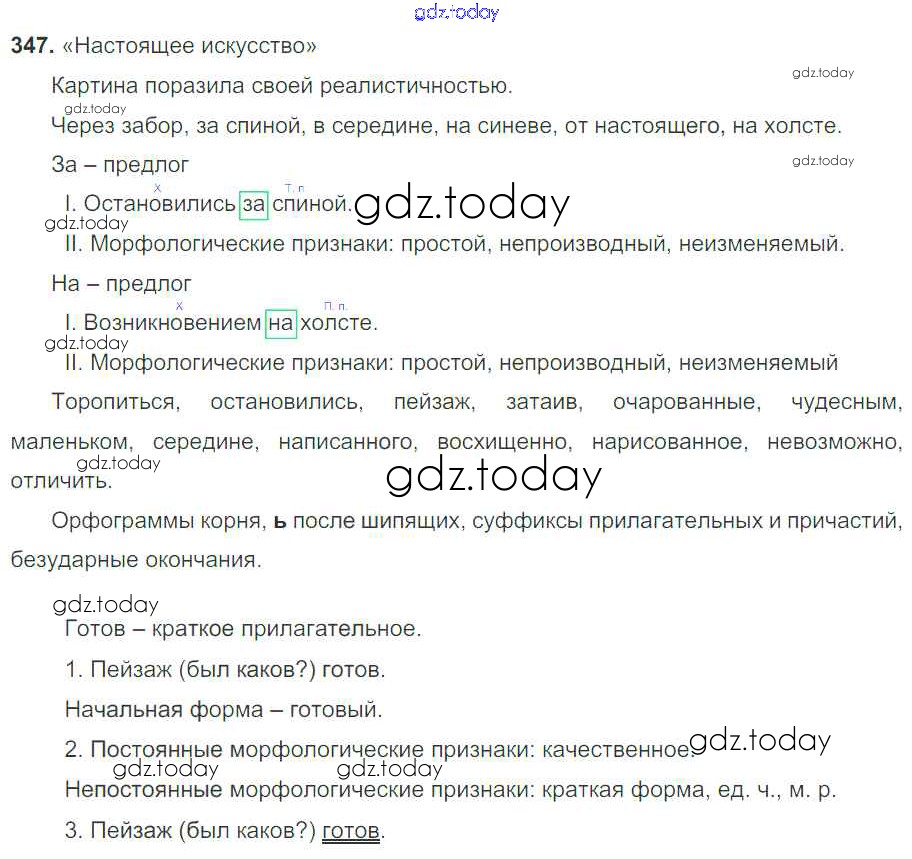 На страницах сайта gdz.today вы найдете учебный и вспомогательный материал, направленный на улучшения знаний школьной программы. ГДЗ - онлайн мир знаний Решение к упражнениям 347 Учебнику по Русскому языку для 7 класса Баранов, Ладыженская Просвещение УМК 2015
