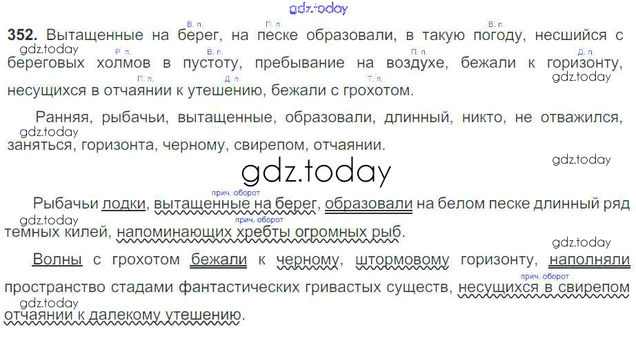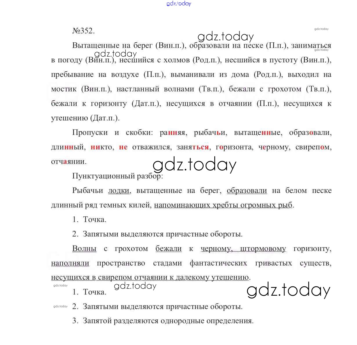 На страницах сайта gdz.today вы найдете учебный и вспомогательный материал, направленный на улучшения знаний школьной программы. ГДЗ - онлайн мир знаний Решение к упражнениям 352 Учебнику по Русскому языку для 7 класса Баранов, Ладыженская Просвещение УМК 2015