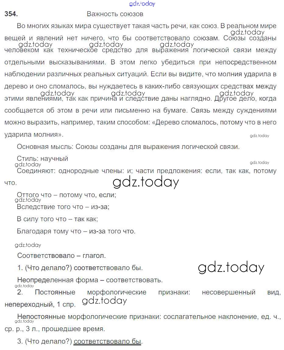 На страницах сайта gdz.today вы найдете учебный и вспомогательный материал, направленный на улучшения знаний школьной программы. ГДЗ - онлайн мир знаний Решение к упражнениям 354 Учебнику по Русскому языку для 7 класса Баранов, Ладыженская Просвещение УМК 2015