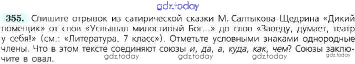 На страницах сайта gdz.today вы найдете учебный и вспомогательный материал, направленный на улучшения знаний школьной программы. ГДЗ - онлайн мир знаний Решение к упражнениям 355 Учебнику по Русскому языку для 7 класса Баранов, Ладыженская Просвещение УМК 2015