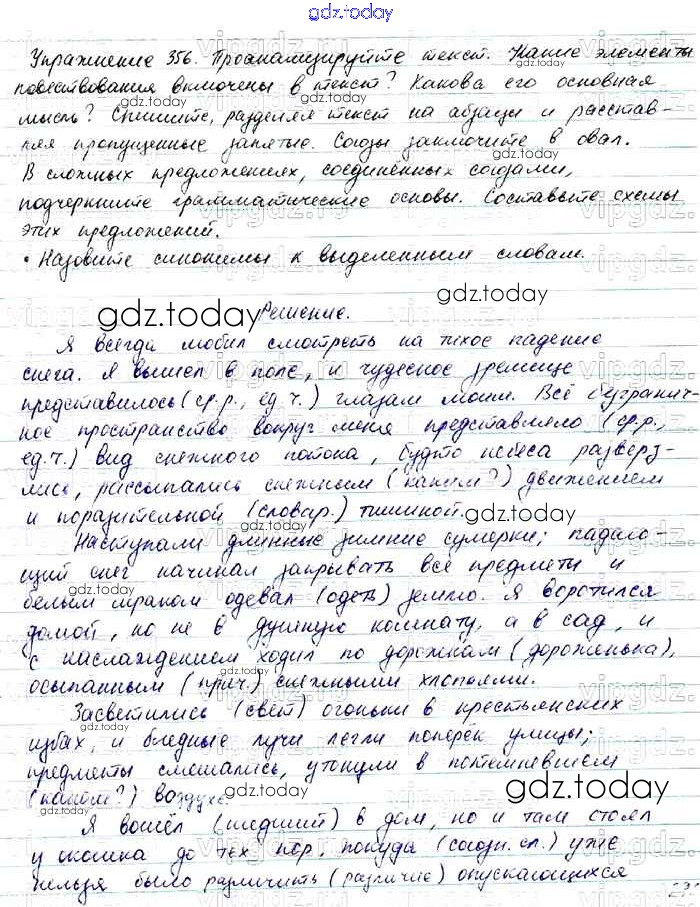 На страницах сайта gdz.today вы найдете учебный и вспомогательный материал, направленный на улучшения знаний школьной программы. ГДЗ - онлайн мир знаний Решение. Упражнения 356 Учебнику по Русскому языку для 7 класса Баранов, Ладыженская Просвещение, Просвещение 2015, 2022