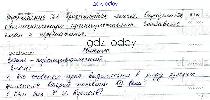 На страницах сайта gdz.today вы найдете учебный и вспомогательный материал, направленный на улучшения знаний школьной программы. ГДЗ - онлайн мир знаний Решение. Упражнения 361 Учебнику по Русскому языку для 7 класса Баранов, Ладыженская Просвещение, Просвещение 2015, 2022
