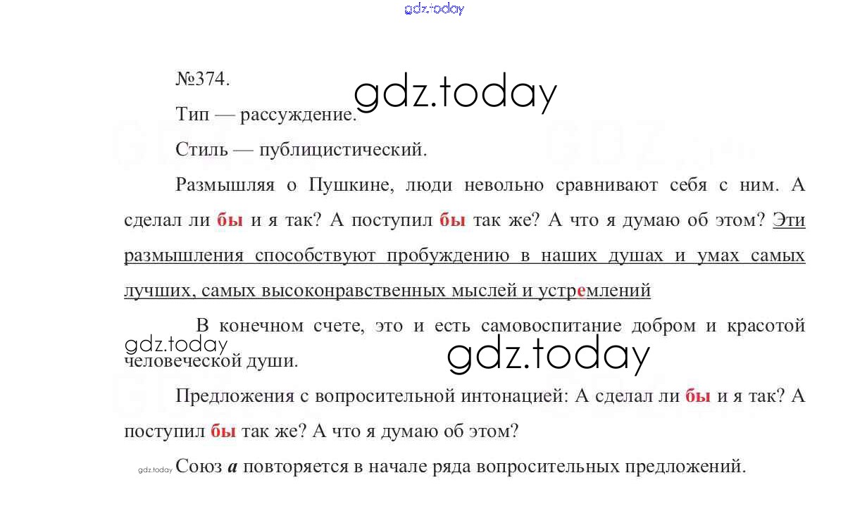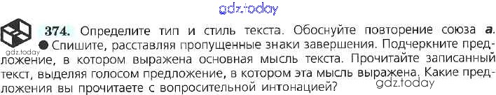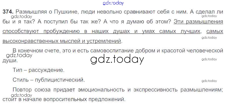 На страницах сайта gdz.today вы найдете учебный и вспомогательный материал, направленный на улучшения знаний школьной программы. ГДЗ - онлайн мир знаний Решение к упражнениям 374 Учебнику по Русскому языку для 7 класса Баранов, Ладыженская Просвещение УМК 2015
