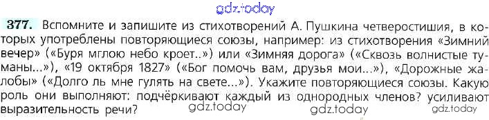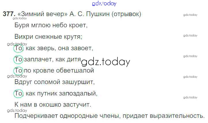 На страницах сайта gdz.today вы найдете учебный и вспомогательный материал, направленный на улучшения знаний школьной программы. ГДЗ - онлайн мир знаний Решение к упражнениям 377 Учебнику по Русскому языку для 7 класса Баранов, Ладыженская Просвещение УМК 2015