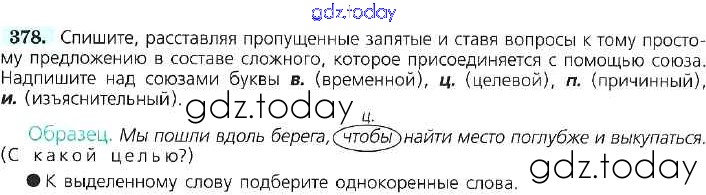На страницах сайта gdz.today вы найдете учебный и вспомогательный материал, направленный на улучшения знаний школьной программы. ГДЗ - онлайн мир знаний Решение к упражнениям 378 Учебнику по Русскому языку для 7 класса Баранов, Ладыженская Просвещение УМК 2015