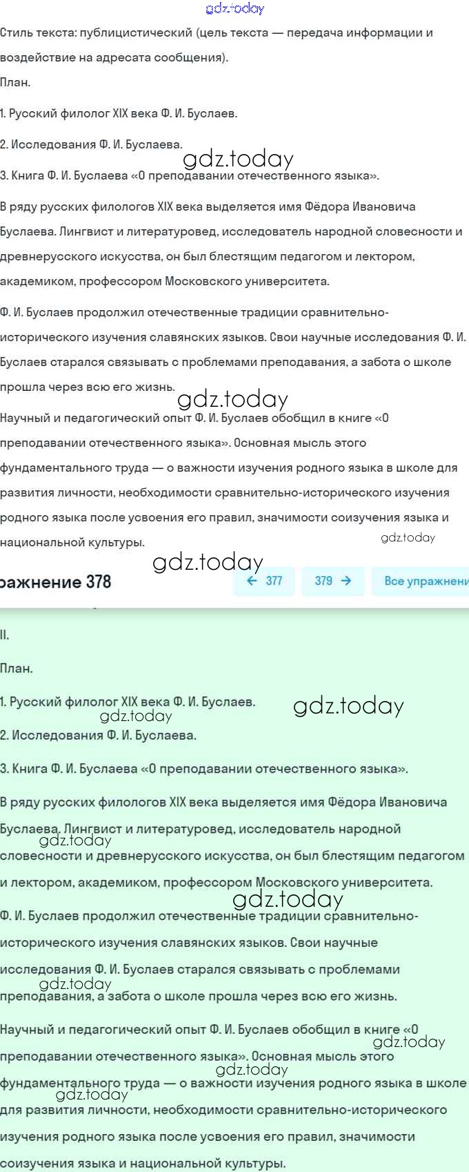 На страницах сайта gdz.today вы найдете учебный и вспомогательный материал, направленный на улучшения знаний школьной программы. ГДЗ - онлайн мир знаний Решение. Упражнения 378 Учебнику по Русскому языку для 7 класса Баранов, Ладыженская Просвещение, Просвещение 2015, 2022