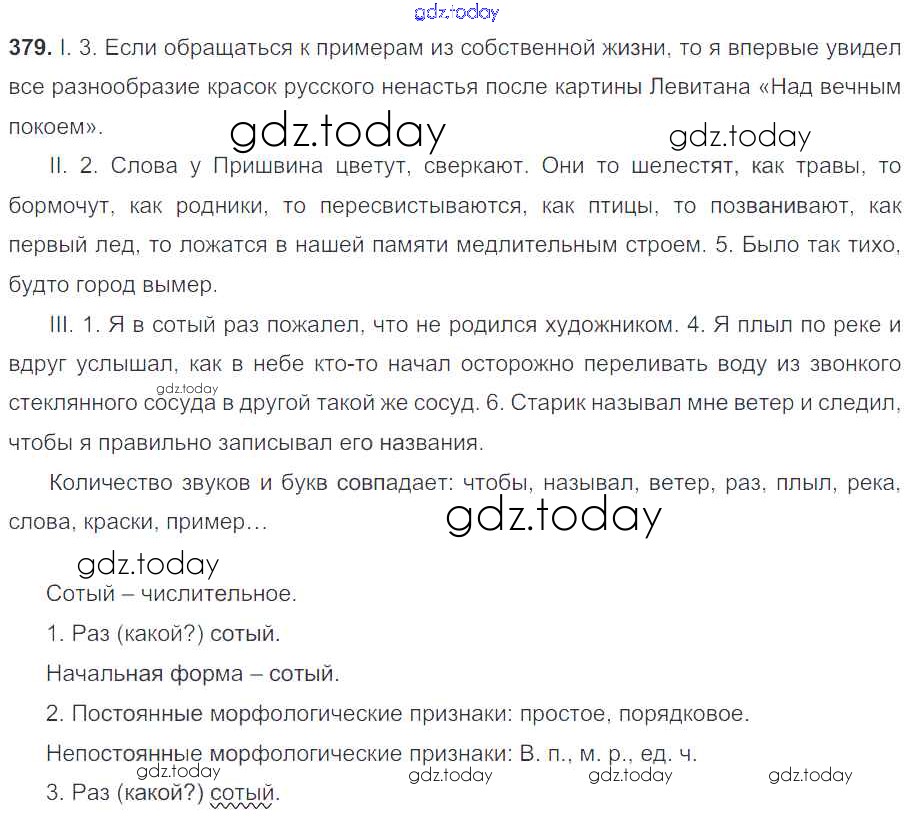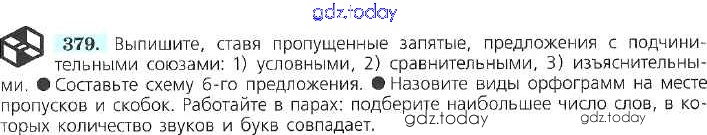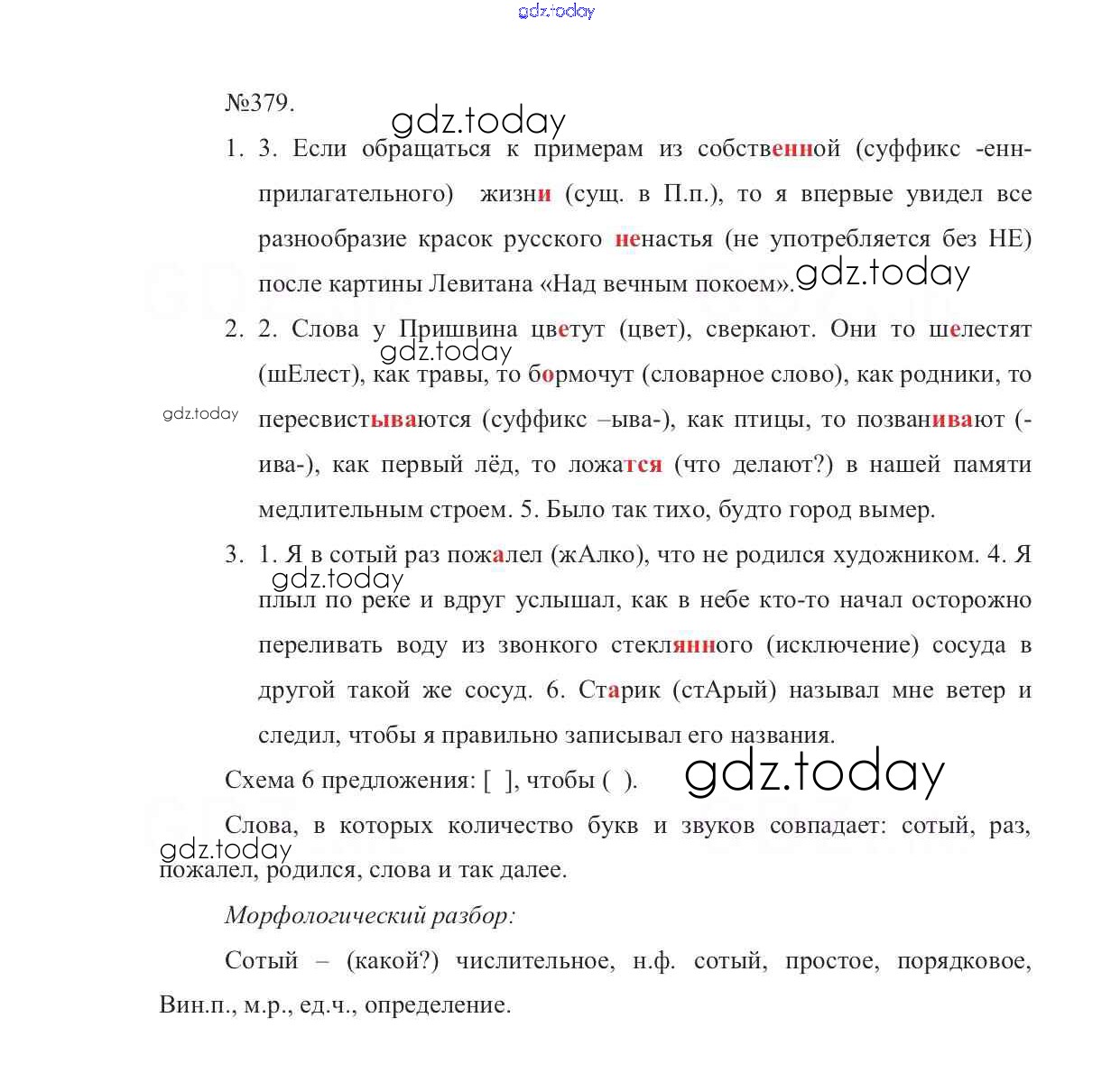 На страницах сайта gdz.today вы найдете учебный и вспомогательный материал, направленный на улучшения знаний школьной программы. ГДЗ - онлайн мир знаний Решение к упражнениям 379 Учебнику по Русскому языку для 7 класса Баранов, Ладыженская Просвещение УМК 2015