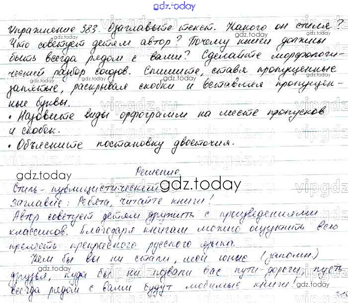 На страницах сайта gdz.today вы найдете учебный и вспомогательный материал, направленный на улучшения знаний школьной программы. ГДЗ - онлайн мир знаний Решение. Упражнения 383 Учебнику по Русскому языку для 7 класса Баранов, Ладыженская Просвещение, Просвещение 2015, 2022