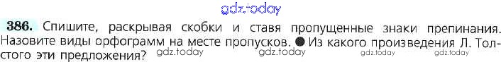 Ответы к Решение к упражнениям 386 Учебнику по Русскому языку для 7 класса Баранов, Ладыженская Просвещение УМК 2015