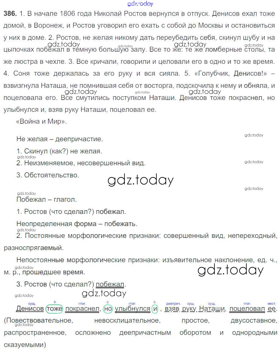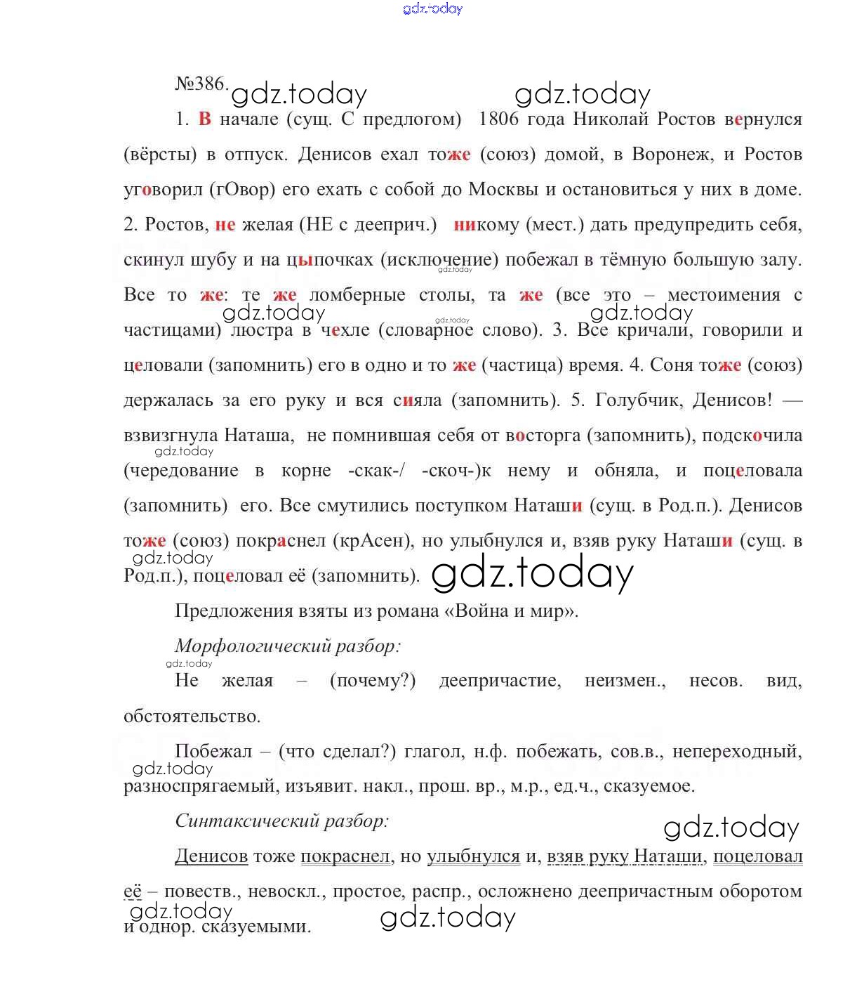 На страницах сайта gdz.today вы найдете учебный и вспомогательный материал, направленный на улучшения знаний школьной программы. ГДЗ - онлайн мир знаний Решение к упражнениям 386 Учебнику по Русскому языку для 7 класса Баранов, Ладыженская Просвещение УМК 2015