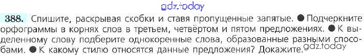 Ответы к Решение к упражнениям 388 Учебнику по Русскому языку для 7 класса Баранов, Ладыженская Просвещение УМК 2015