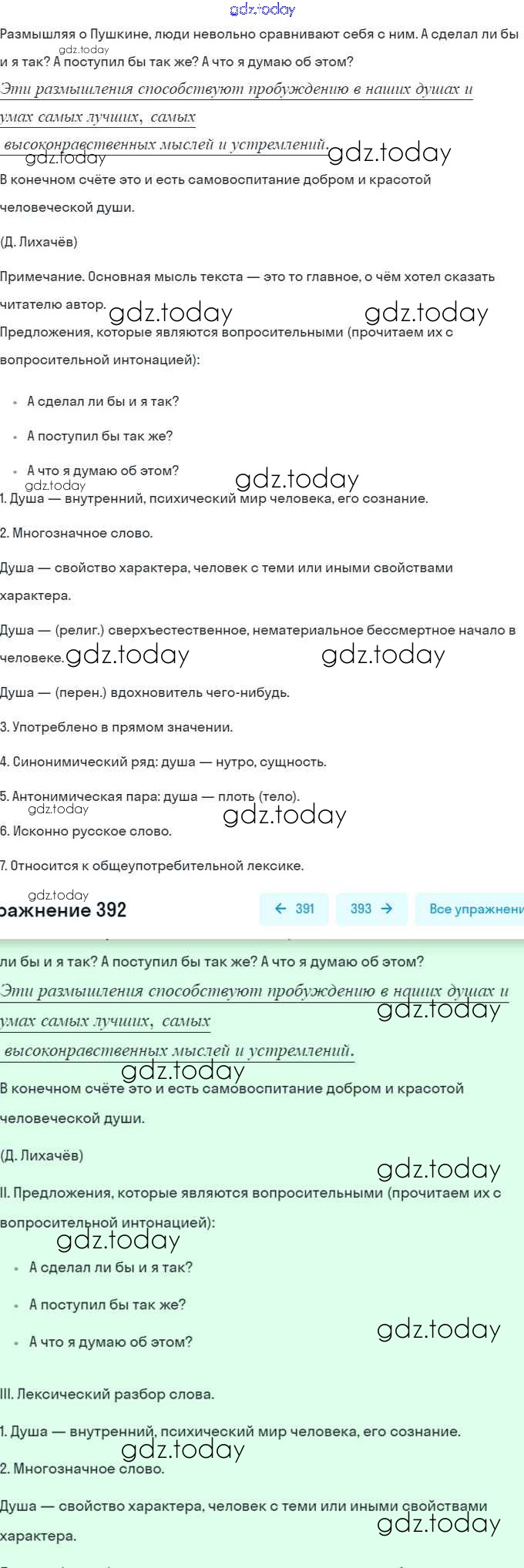 На страницах сайта gdz.today вы найдете учебный и вспомогательный материал, направленный на улучшения знаний школьной программы. ГДЗ - онлайн мир знаний Решение. Упражнения 392 Учебнику по Русскому языку для 7 класса Баранов, Ладыженская Просвещение, Просвещение 2015, 2022