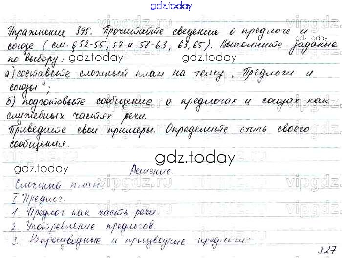 На страницах сайта gdz.today вы найдете учебный и вспомогательный материал, направленный на улучшения знаний школьной программы. ГДЗ - онлайн мир знаний Решение. Упражнения 395 Учебнику по Русскому языку для 7 класса Баранов, Ладыженская Просвещение, Просвещение 2015, 2022