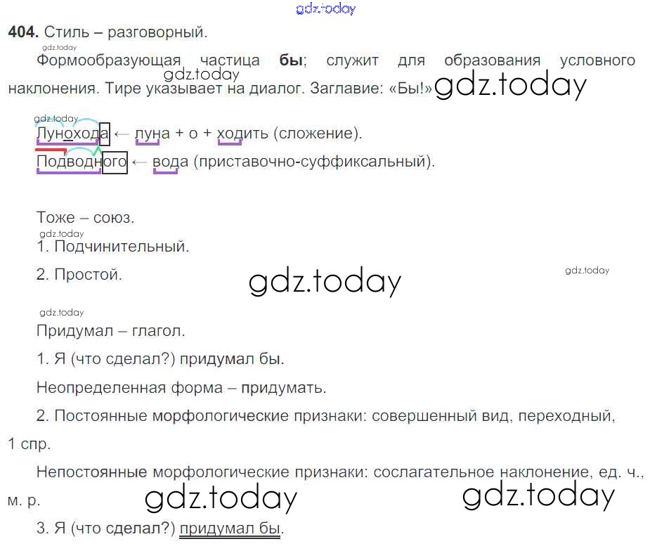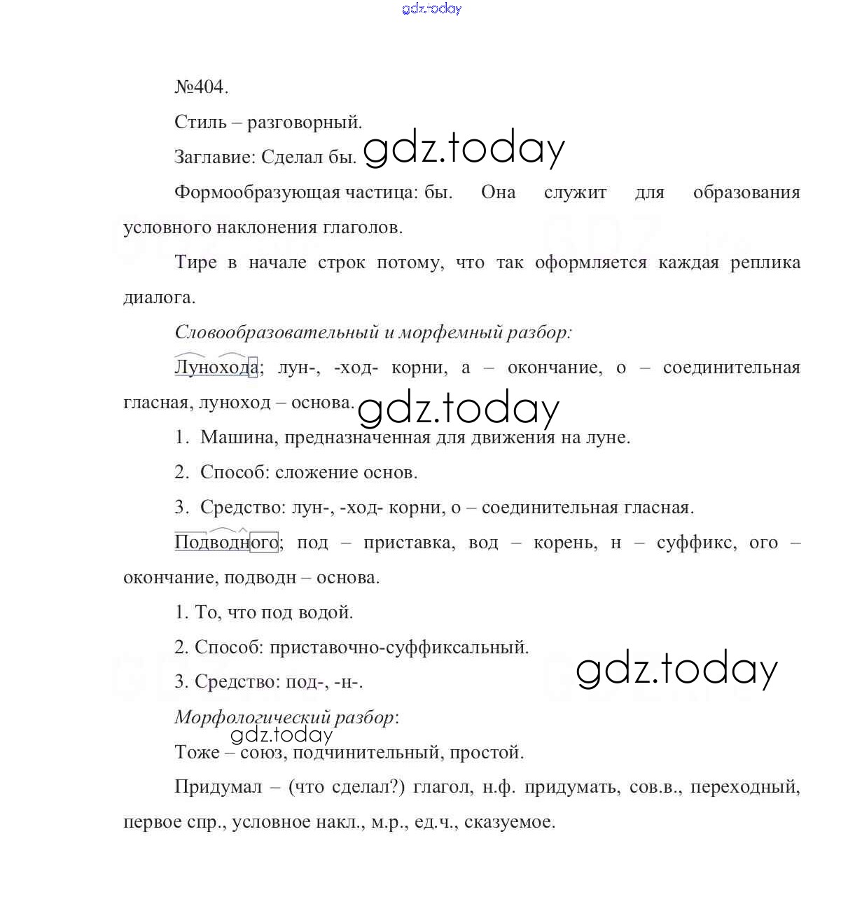 На страницах сайта gdz.today вы найдете учебный и вспомогательный материал, направленный на улучшения знаний школьной программы. ГДЗ - онлайн мир знаний Решение к упражнениям 404 Учебнику по Русскому языку для 7 класса Баранов, Ладыженская Просвещение УМК 2015