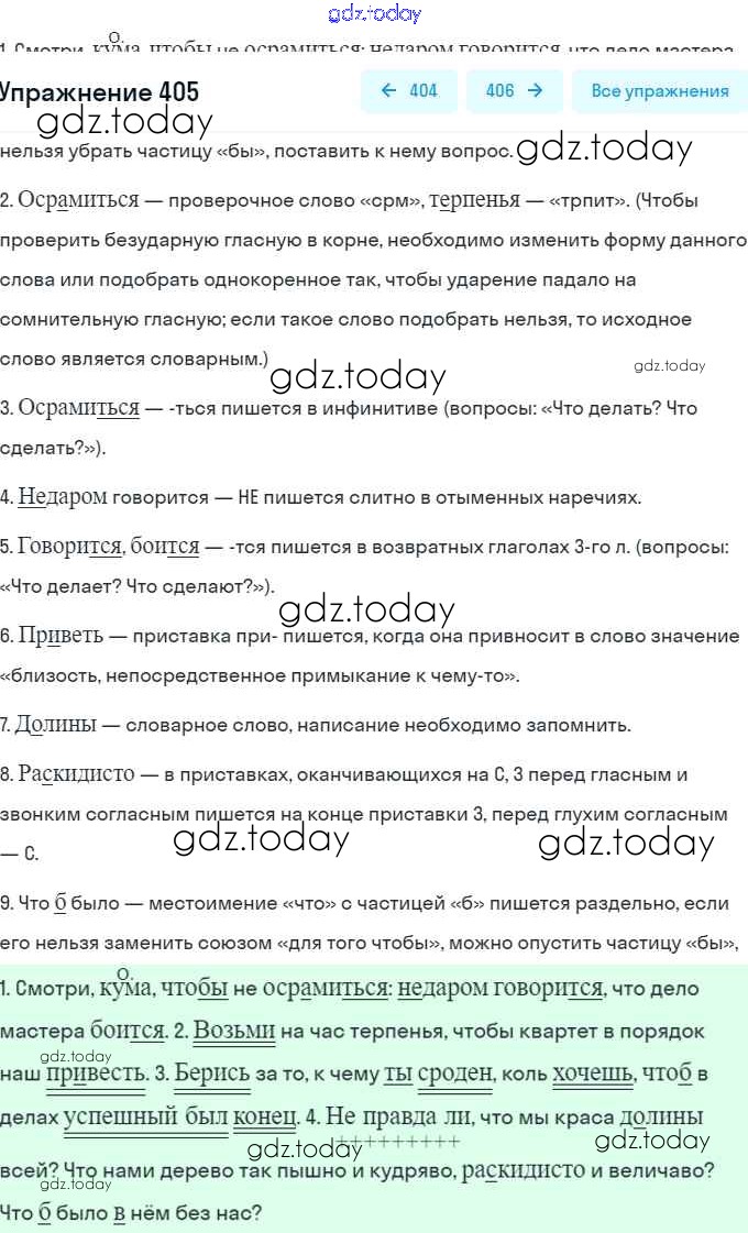 На страницах сайта gdz.today вы найдете учебный и вспомогательный материал, направленный на улучшения знаний школьной программы. ГДЗ - онлайн мир знаний Решение. Упражнения 405 Учебнику по Русскому языку для 7 класса Баранов, Ладыженская Просвещение, Просвещение 2015, 2022
