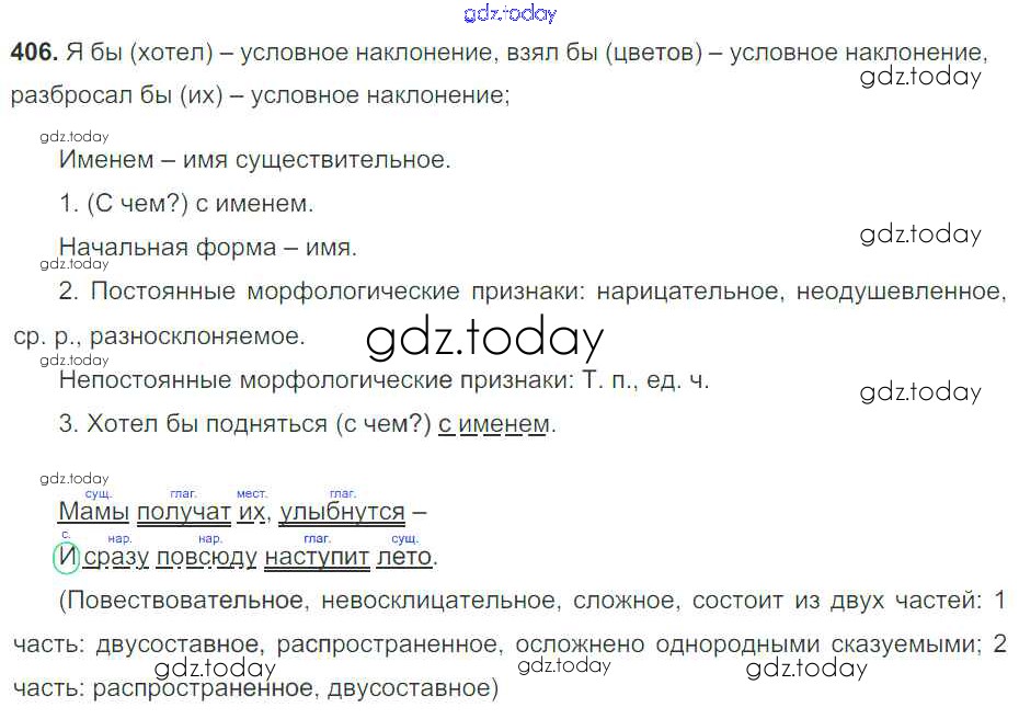 На страницах сайта gdz.today вы найдете учебный и вспомогательный материал, направленный на улучшения знаний школьной программы. ГДЗ - онлайн мир знаний Решение к упражнениям 406 Учебнику по Русскому языку для 7 класса Баранов, Ладыженская Просвещение УМК 2015