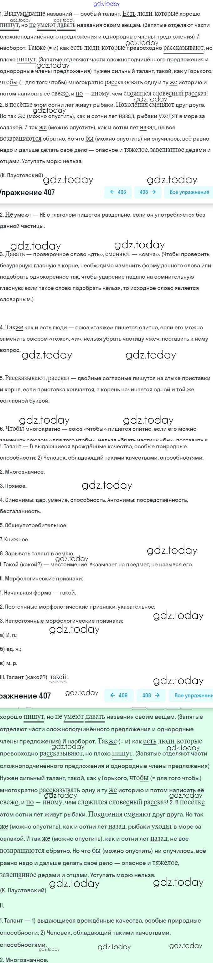 На страницах сайта gdz.today вы найдете учебный и вспомогательный материал, направленный на улучшения знаний школьной программы. ГДЗ - онлайн мир знаний Решение. Упражнения 407 Учебнику по Русскому языку для 7 класса Баранов, Ладыженская Просвещение, Просвещение 2015, 2022