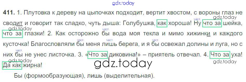 На страницах сайта gdz.today вы найдете учебный и вспомогательный материал, направленный на улучшения знаний школьной программы. ГДЗ - онлайн мир знаний Решение к упражнениям 411 Учебнику по Русскому языку для 7 класса Баранов, Ладыженская Просвещение УМК 2015