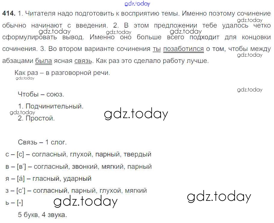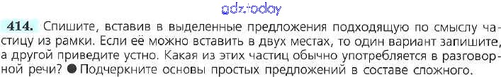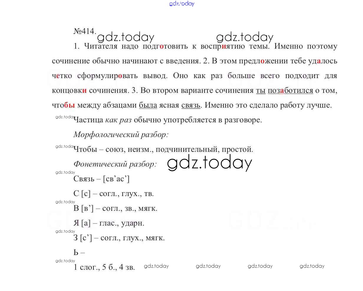 На страницах сайта gdz.today вы найдете учебный и вспомогательный материал, направленный на улучшения знаний школьной программы. ГДЗ - онлайн мир знаний Решение к упражнениям 414 Учебнику по Русскому языку для 7 класса Баранов, Ладыженская Просвещение УМК 2015