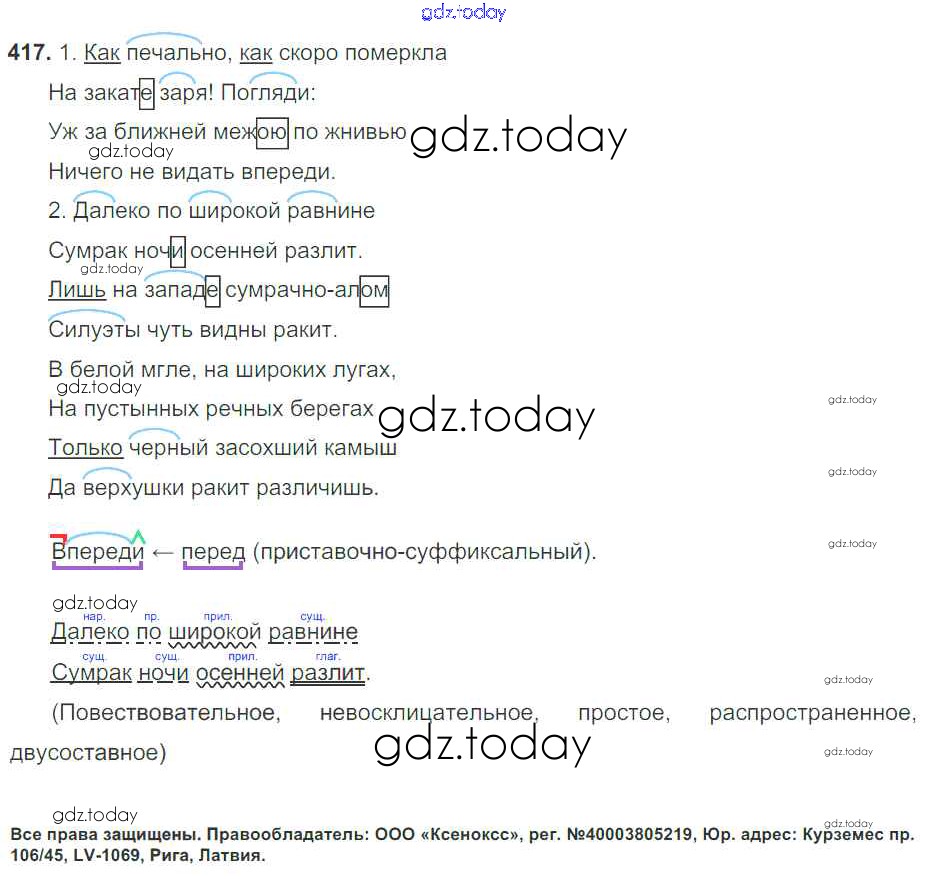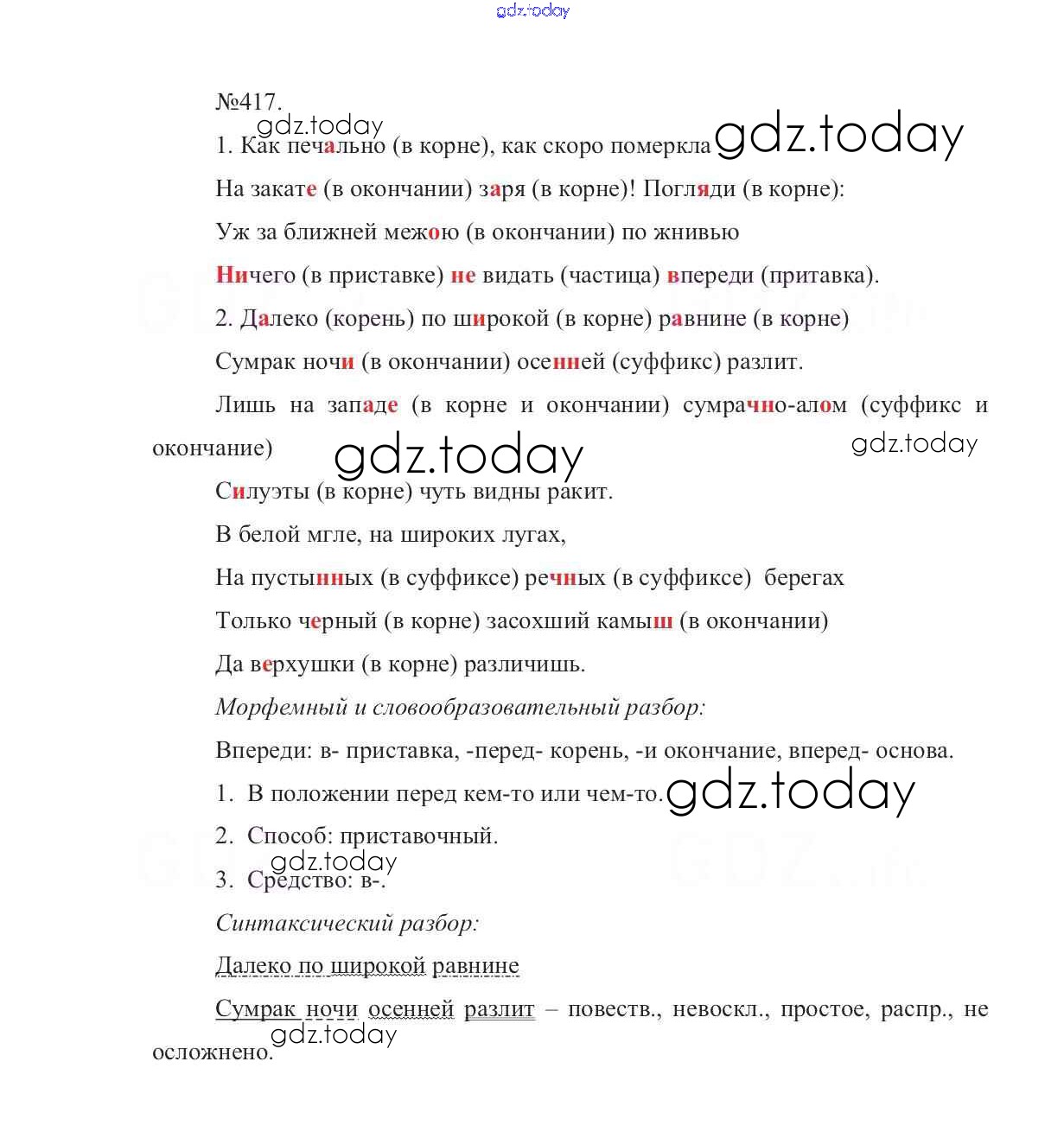 На страницах сайта gdz.today вы найдете учебный и вспомогательный материал, направленный на улучшения знаний школьной программы. ГДЗ - онлайн мир знаний Решение к упражнениям 417 Учебнику по Русскому языку для 7 класса Баранов, Ладыженская Просвещение УМК 2015