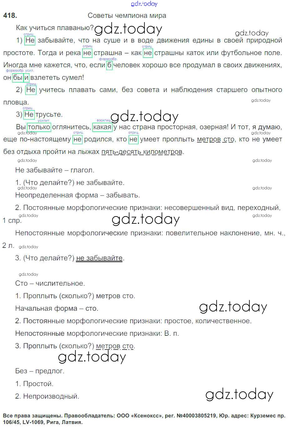 На страницах сайта gdz.today вы найдете учебный и вспомогательный материал, направленный на улучшения знаний школьной программы. ГДЗ - онлайн мир знаний Решение к упражнениям 418 Учебнику по Русскому языку для 7 класса Баранов, Ладыженская Просвещение УМК 2015