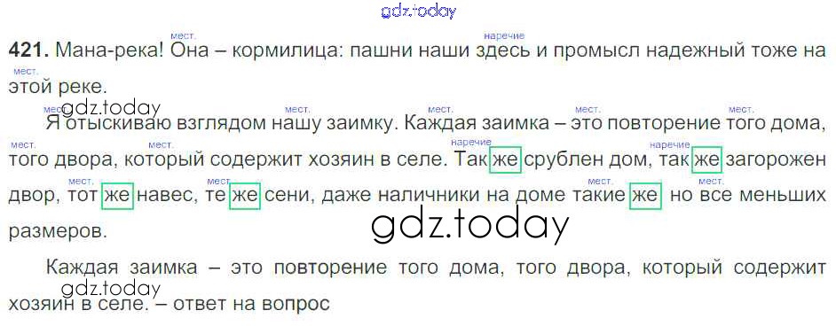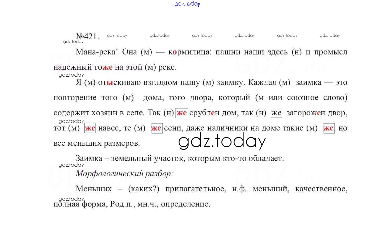 На страницах сайта gdz.today вы найдете учебный и вспомогательный материал, направленный на улучшения знаний школьной программы. ГДЗ - онлайн мир знаний Решение к упражнениям 421 Учебнику по Русскому языку для 7 класса Баранов, Ладыженская Просвещение УМК 2015