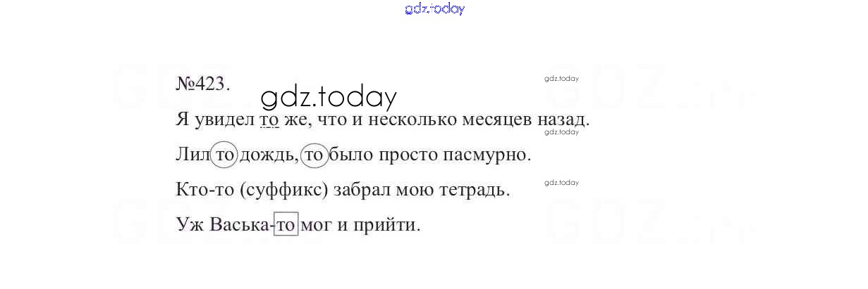 На страницах сайта gdz.today вы найдете учебный и вспомогательный материал, направленный на улучшения знаний школьной программы. ГДЗ - онлайн мир знаний Решение к упражнениям 423 Учебнику по Русскому языку для 7 класса Баранов, Ладыженская Просвещение УМК 2015