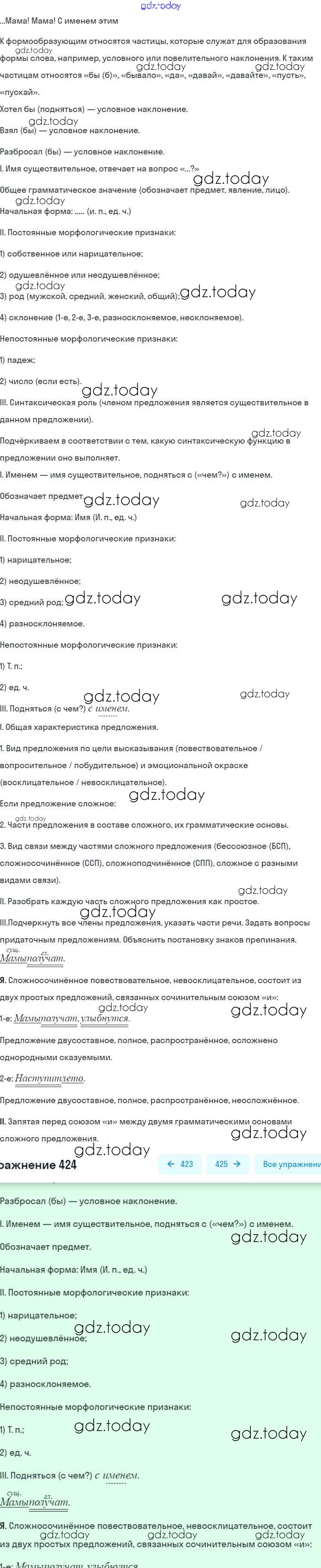 На страницах сайта gdz.today вы найдете учебный и вспомогательный материал, направленный на улучшения знаний школьной программы. ГДЗ - онлайн мир знаний Решение. Упражнения 424 Учебнику по Русскому языку для 7 класса Баранов, Ладыженская Просвещение, Просвещение 2015, 2022