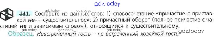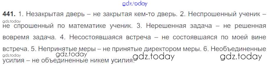 На страницах сайта gdz.today вы найдете учебный и вспомогательный материал, направленный на улучшения знаний школьной программы. ГДЗ - онлайн мир знаний Решение к упражнениям 441 Учебнику по Русскому языку для 7 класса Баранов, Ладыженская Просвещение УМК 2015