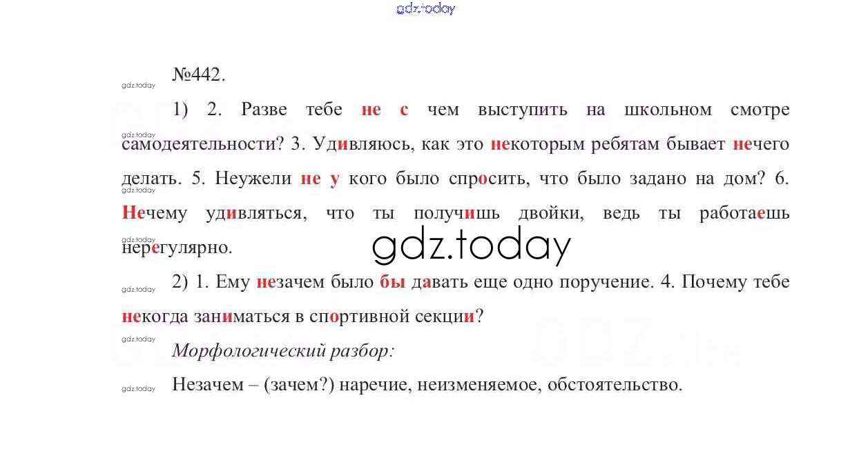 На страницах сайта gdz.today вы найдете учебный и вспомогательный материал, направленный на улучшения знаний школьной программы. ГДЗ - онлайн мир знаний Решение к упражнениям 442 Учебнику по Русскому языку для 7 класса Баранов, Ладыженская Просвещение УМК 2015