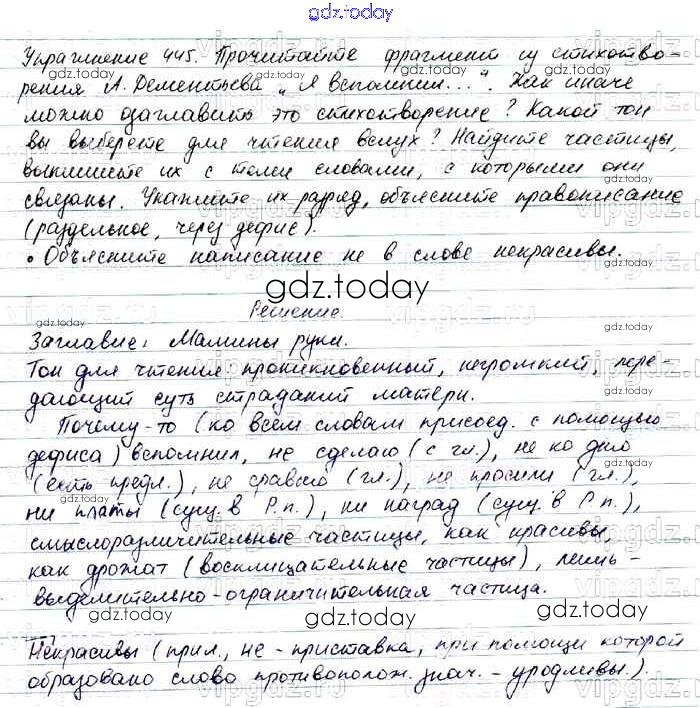 Ответы к Решение. Упражнения 445 Учебнику по Русскому языку для 7 класса Баранов, Ладыженская Просвещение, Просвещение 2015, 2022